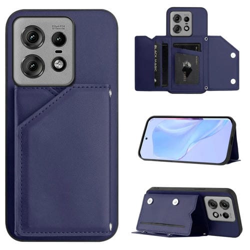 Funda para Motorola Edge 50 Pro Skin Feel con 4 Ranuras para Tarjetas y Correa (Azul)