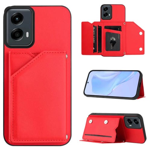 Funda para Motorola Moto G 5G (2024) con 4 Ranuras para Tarjetas y Correa para Muñeca (Rojo)