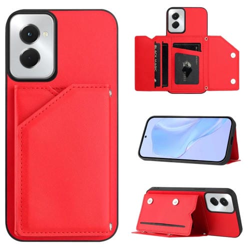 Funda para Motorola Moto G Play 2024 5G con 4 Ranuras para Tarjetas y Correa (Rojo)