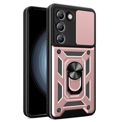 Funda para Teléfono con Diseño de Cubierta Deslizante para Cámara Global para Vivo Y200E 5G, TPU + PC (Oro Rosa)