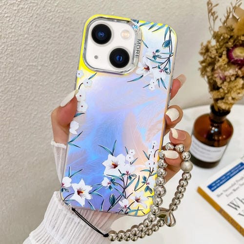 Funda para Teléfono iPhone 14 con Diseño de Flores y Galvanoplastia Láser con Correa (Morning Glory Ah16)