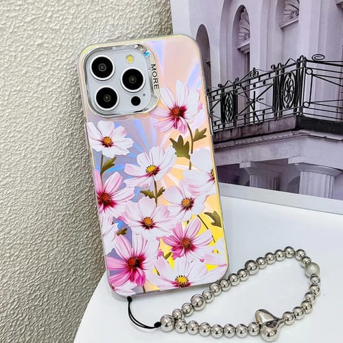 Funda para Teléfono iPhone 13 Pro Diseño Flores Galvanizadas con Láser y Correa para Muñeca (Flor Cosmos Ah7)