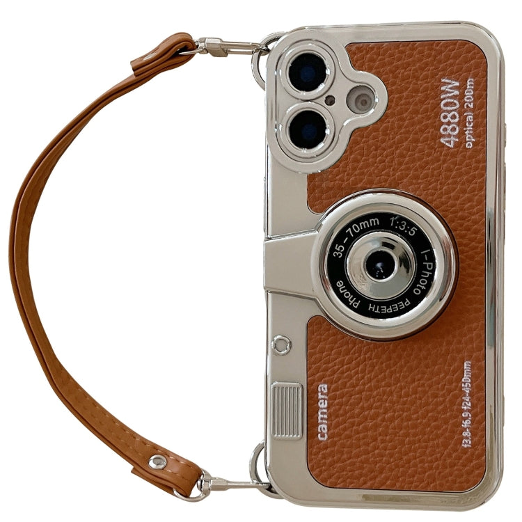 Funda para Teléfono iPhone 16 Estilo Cámara (Marrón)