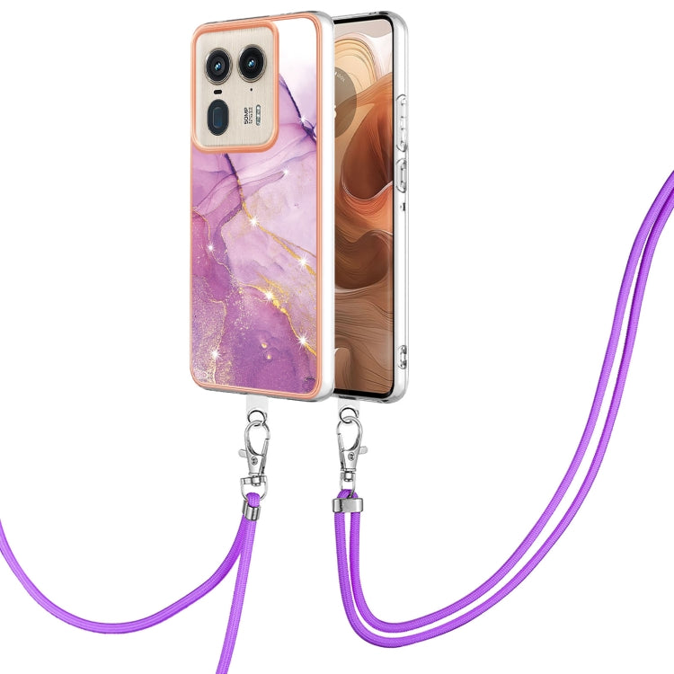 Funda Teléfono Motorola Edge 50 Ultra Imd Doble Cara Galvanoplastia Mármol con Cordón (Púrpura)