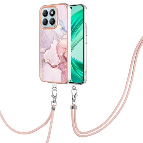 Funda para Teléfono Honor X8B con Imd Doble Cara y Revestimiento Mármol Galvanizado con Cordón (Oro Rosa)