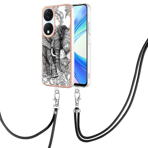 Funda para Teléfono Honor X7B 4G/5G con Imd Doble Cara Galvanizada y Cordón (Elefante Tótem)