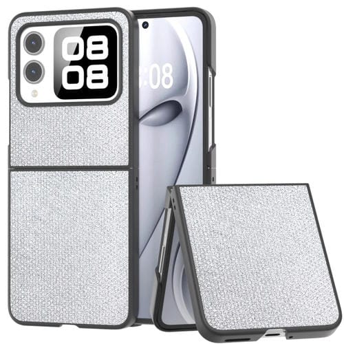 - 1x Funda para Teléfono Huawei Nova Flip con Marco Negro y Diamantes (Plata)