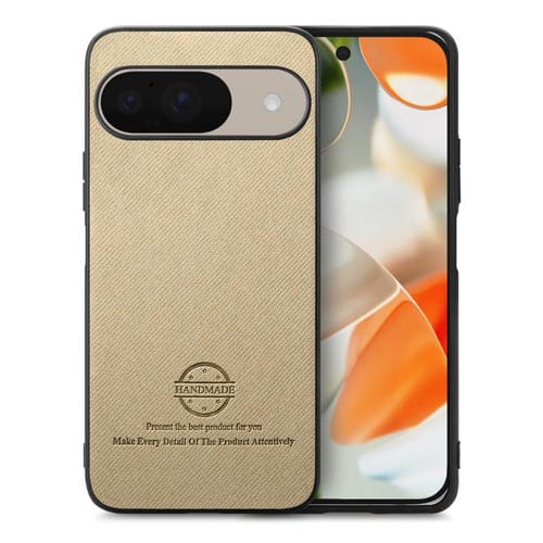 Funda para Teléfono Google Pixel 9/9 Pro con Piel de Cuero y Tela de Sarga (Caqui)