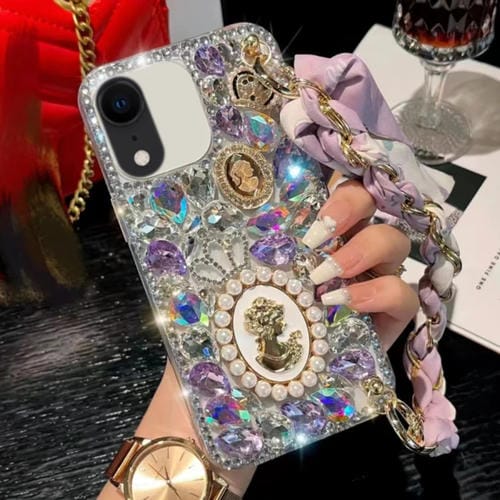 Funda para Teléfono PC y Pulsera Piedras Preciosas Moradas Diamantes iPhone Xr (Blanca)