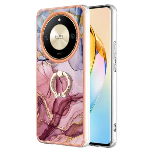 Funda para Teléfono Honor X9B con Revestimiento Mármol Galvanizado Doble Cara IMD y Anillo (Rosa Rojo)