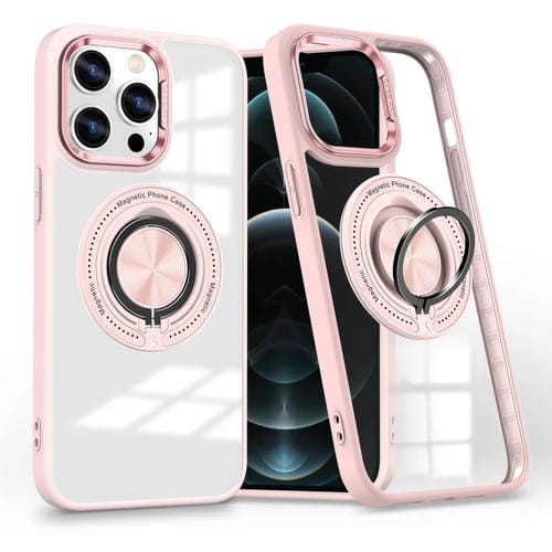 Funda para Teléfono iPhone 12 Pro Soporte Anillo Giratorio Magnético (Rosa)