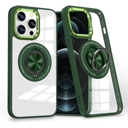 Funda para Teléfono iPhone 12 Pro Soporte Anillo Giratorio Magnético (Verde Oscuro)