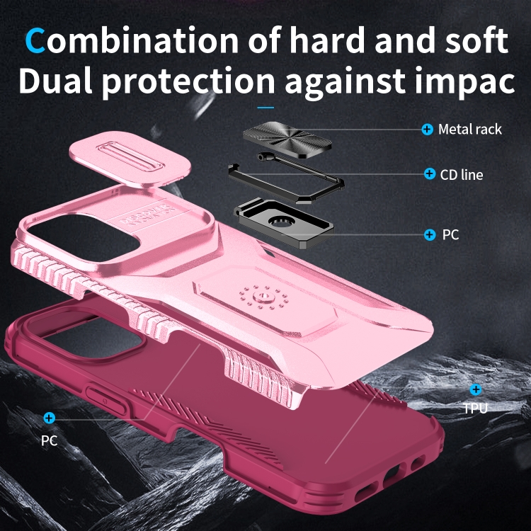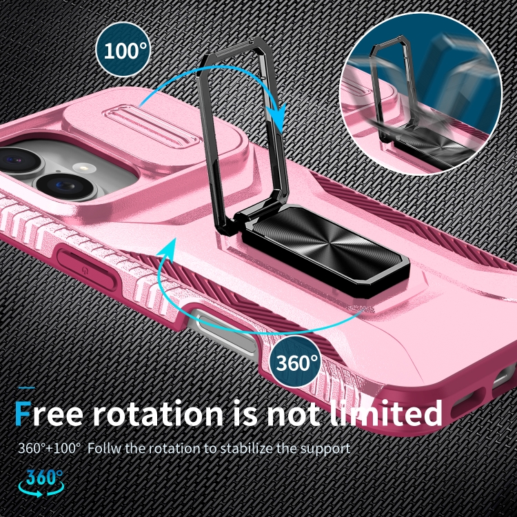 Funda para Teléfono Camshield iPhone 16 Soporte Deslizante (Rosa + Rojo Rosa)