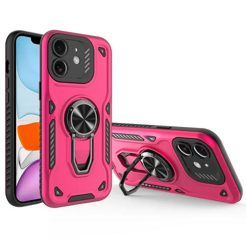 Funda para Teléfono iPhone 11 con Soporte Giratorio Metal TPU PC (Rosa Rojo)