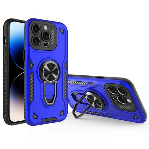 Funda para Teléfono iPhone 14 Pro Max Soporte Giratorio Metal TPU PC (Azul Marino)