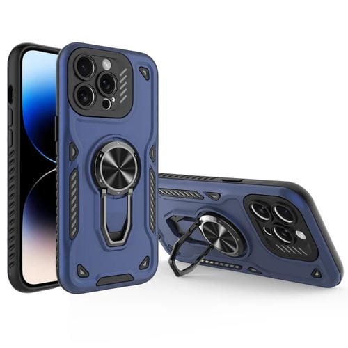 Funda para teléfono iPhone 14 Pro Max con soporte giratorio de metal TPU + PC (Azul Oscuro)