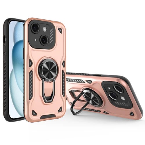 Funda para Teléfono iPhone 15 Soporte Giratorio Metal TPU PC (Dorado)