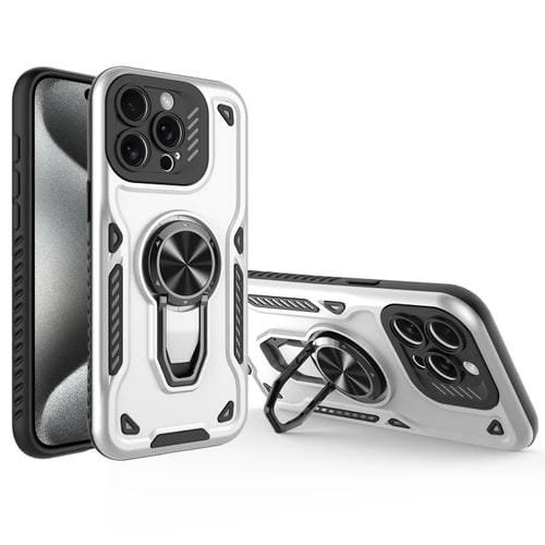 Funda para Teléfono iPhone 15 Pro Soporte Giratorio Metal TPU PC (Blanco)
