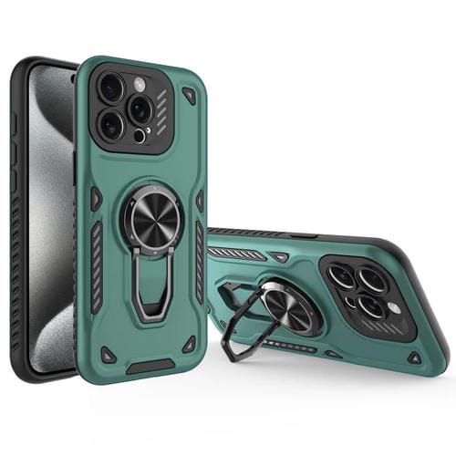 Funda para teléfono iPhone 15 Pro TPU + PC con soporte giratorio metálico (Verde)