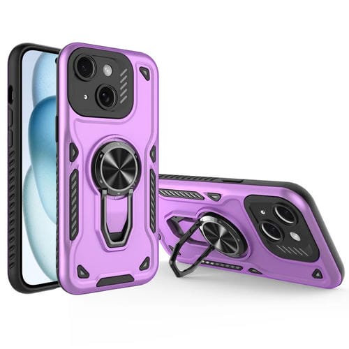 Funda para Teléfono iPhone 15 Soporte Giratorio Metal Carcasa Magnética TPU PC (Morado)