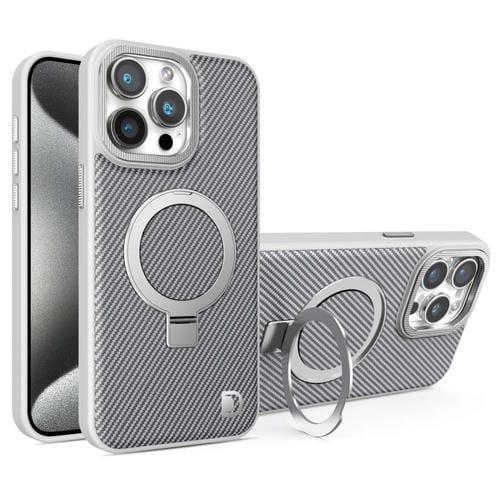 Funda para Teléfono Fibra de Carbono con Soporte Magsafe para iPhone 15 Pro (Gris)