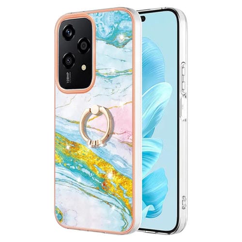Funda para Teléfono Honor 200 Lite con Soporte Anillo Revestimiento Mármol Imd TPU (Verde)