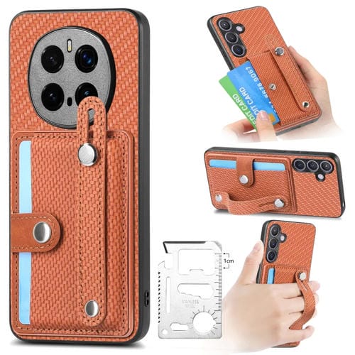 Funda para Teléfono Honor Magic7 Pro con Soporte, Pulsera, Tarjetero y Cuchillo (Marrón)