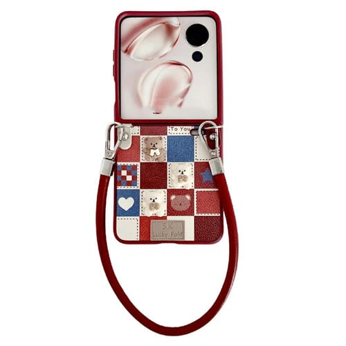 Funda para Teléfono Honor Magic V con Tapa Osito de Peluche y Correa para Muñeca (Rojo)