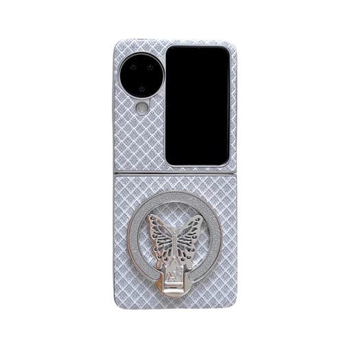 Funda para Teléfono con Tapa de PC con Rombos y Diamantes Brillantes para Oppo Find N3 (Plateada)