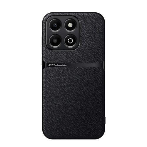 Funda para Teléfono Honor X6B con Tapa Magnética de Cuero de Lichi a Prueba de Golpes (Negro)