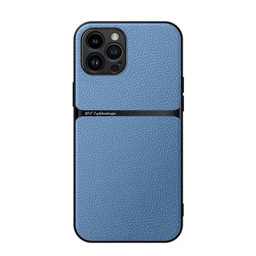 Funda para Teléfono iPhone 12 Pro con Tapa Magnética de Piel de Lichi a Prueba de Golpes (Azul)