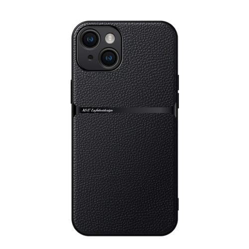 Funda para Teléfono Piel de Lichi iPhone 15 Tapa Magnética Cobertura Total (Negra)