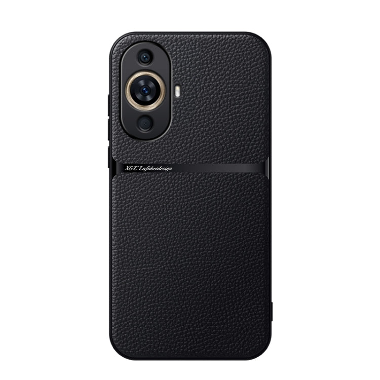 Funda para Teléfono Huawei Nova 11/Nova 12S con Tapa Magnética Piel de Lichi (Negro) Protección Total