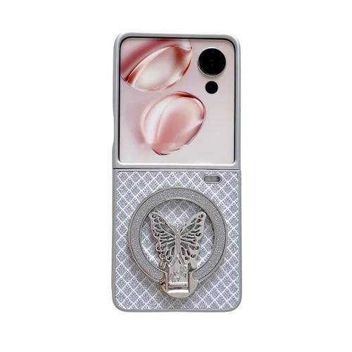 Funda para Teléfono Honor Magic V con Tapa y Soporte Diseño Rombos Diamantes (Plateada)
