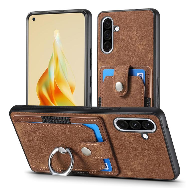 Funda para Teléfono Samsung Galaxy A36 con Tarjetero y Anillo Tacto de Piel (Marrón)