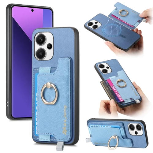 Funda para Teléfono con TaRJetero y Anillo de Cuero con Diseño Retro Magsafe Cross para Redmi Note 13 Pro+ (Azul)