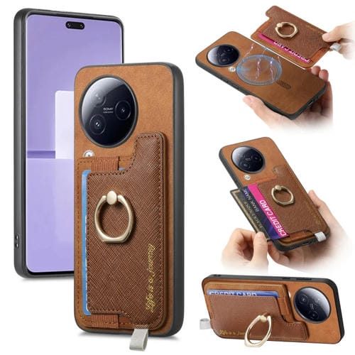 Funda para Teléfono con TaRJetero y Anillo de Cuero con Diseño Retro Magsafe Cross para Xiaomi Civi 3 5G (Marrón)