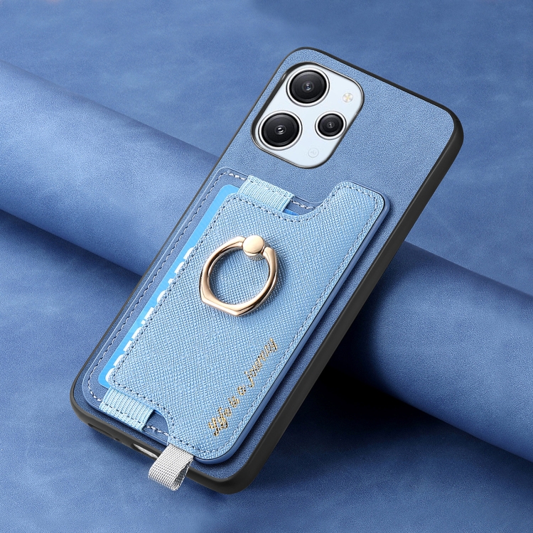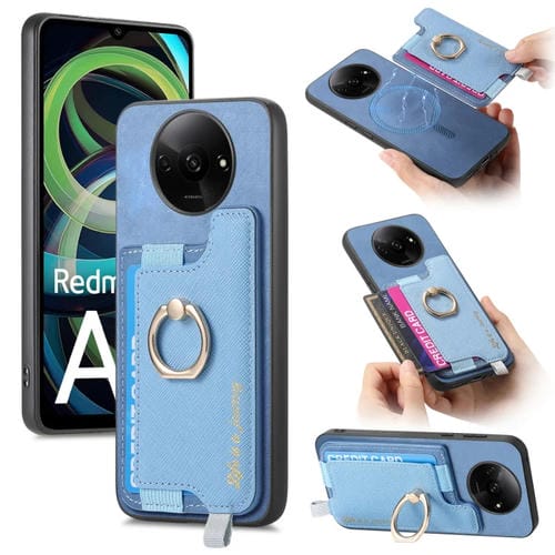 Funda para Teléfono con TaRJetero y Anillo de Cuero con Diseño Retro Magsafe Cross para Xiaomi Redmi A3 (Azul)