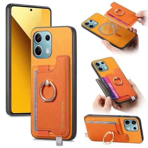 Funda para Teléfono con TaRJetero y Anillo de Cuero con Diseño Retro Magsafe Cross para Xiaomi Redmi Note 13 5G (Amarillo)