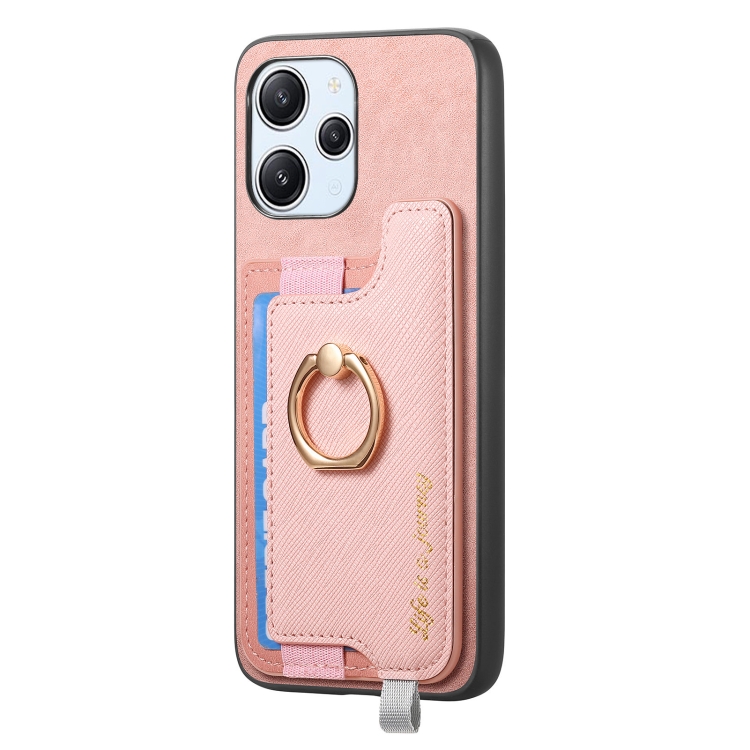 Funda para Teléfono con TaRJetero y Anillo de Cuero con Diseño Retro Magsafe para Redmi 12/Note 12R/Poco M6 Pro 5G (Rosa)