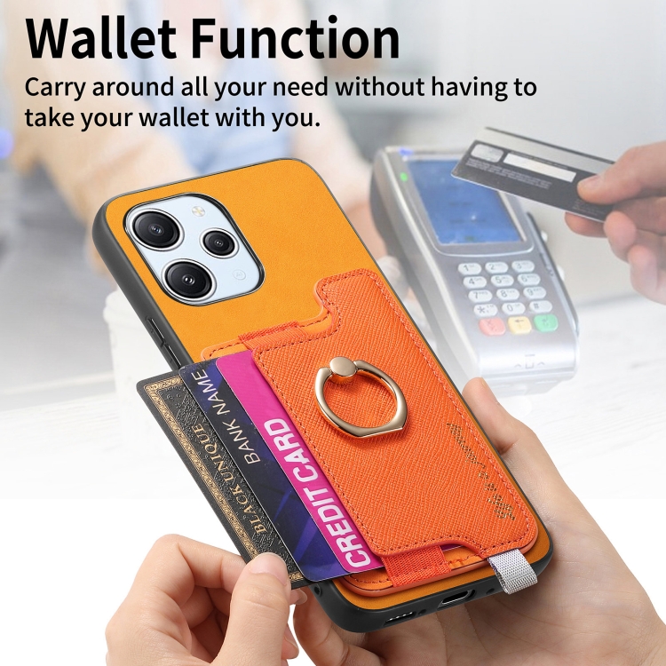 Funda para Teléfono con TaRJetero y Anillo de Cuero con Diseño Retro Magsafe para Xiaomi Redmi A3 (Amarillo)