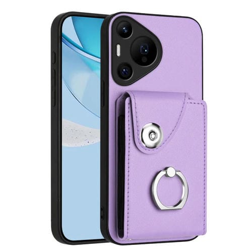 Funda para Teléfono Huawei Pura 70 Pro y 70 Pro+ con Tarjetero y Anillo (Morado)