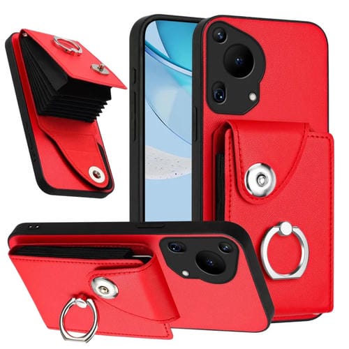 - 1x Funda para Teléfono Huawei Pura 70 Ultra con Tarjetero y Anillo (Rojo)