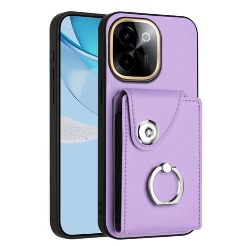 Funda para Teléfono con TaRJetero y Anillo para Vivo Y200 (Morado)