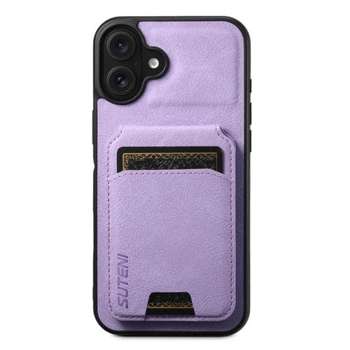 Funda para Teléfono Suteni H02 con Tarjetero de Cuero Lichi para iPhone 16 Plus (Morado)