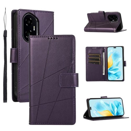 Funda para Teléfono Honor 300 Pro/300 Ultra Cuero PU Líneas en Relieve (Púrpura)