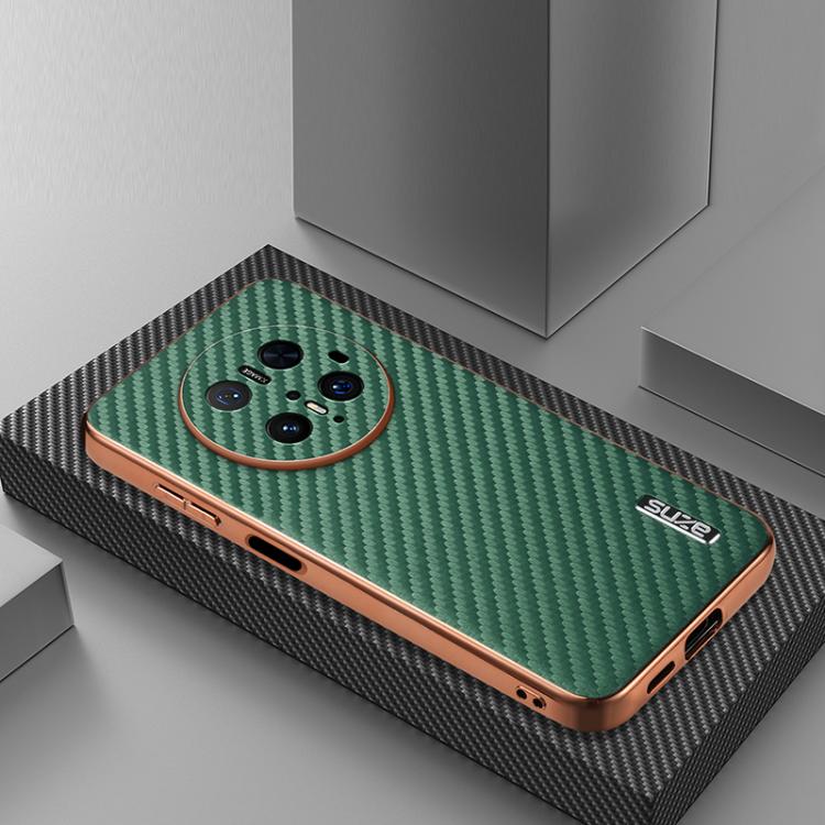 Funda para Huawei Mate 70 Pro / 70 Pro+ Azns con Textura Fibra de Carbono y Borde Galvanizado (Verde)