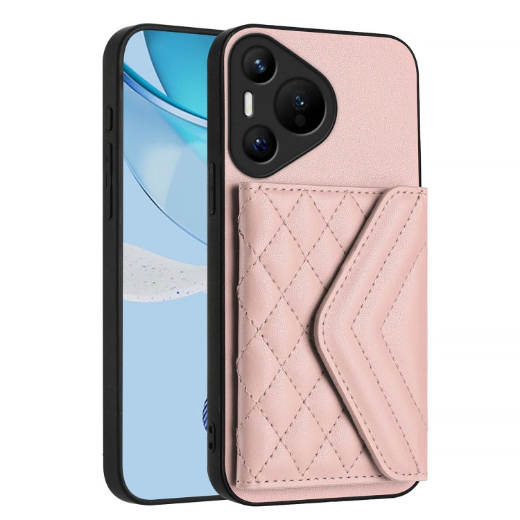 Funda para Teléfono Huawei Pura 70 con Textura Rombal y RFID con Cordón Largo (Oro Rosa)