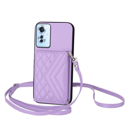 Funda para Teléfono con Textura Rómbica y Rfid para Oppo F25 Pro 5G, con Cordón Largo (Morado)