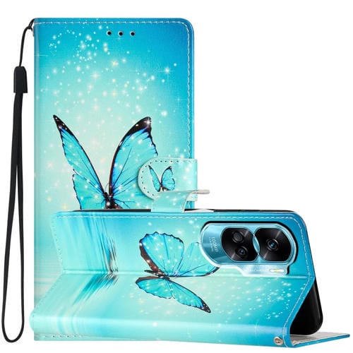 Étui de téléphone en cuir de dessin coloré pour Honor 90 Lite (papillon bleu)